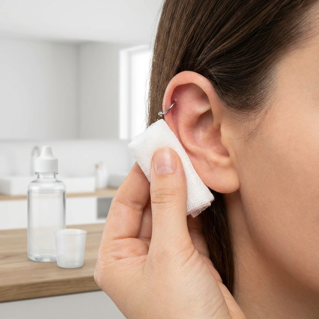 Tout d’abord, stoppez immédiatement la source d’irritation. Évitez de toucher le piercing et protégez-le des chocs. Nettoyez la zone deux fois par jour avec une solution saline stérile. Ne tournez jamais le bijou, contrairement aux idées reçues.