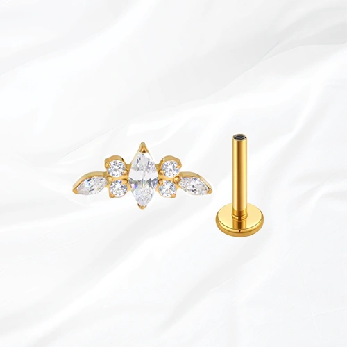 Ce piercing en titane est proposé en finition dorée ou argentée, afin de convenir à tous les styles : minimaliste, chic, ou en accumulation. Il peut donc être porté seul, pour un effet discret, ou combiné à d’autres piercings, pour un rendu plus travaillé.