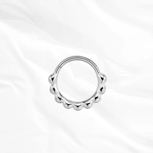 Piercing titane septum, daith, helix conçu pour allier confort, hygiène et durabilité. Fabriqué en titane ASTM F136, ce bijou hypoallergénique est sans nickel, ce qui le rend idéal pour les peaux sensibles ou sujettes aux inflammations. Il est recommandé aussi bien pour les premières poses que pour les remplacements.