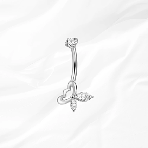 Piercing en titane nombril « L’envolée du papillon ». Parfait pour une cicatrisation propre et rapide. Finition polie et tailles adaptées à toutes les morphologies.