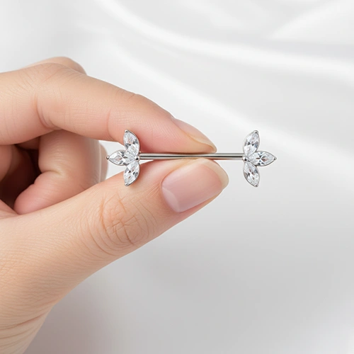 Pour préserver l’éclat de votre piercing Le Double Trident, nous vous recommandons un nettoyage régulier avec une solution saline ou un savon doux au pH neutre. Un séchage soigné avec une compresse propre après la douche permettra de maintenir le poli miroir du métal. Le titane ne craint pas l’eau, ce qui vous permet de porter votre bijou lors de toutes vos activités quotidiennes sans risque de ternissement.