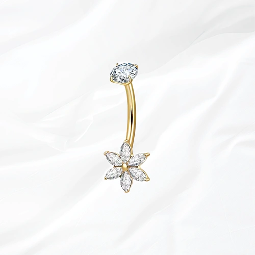 Piercing en titane nombril « Lily ». Parfait pour une cicatrisation propre et rapide. Finition polie et tailles adaptées à toutes les morphologies.