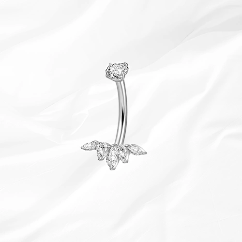 Piercing en titane nombril « La marquise renversée ». Parfait pour une cicatrisation propre et rapide. Finition polie et tailles adaptées à toutes les morphologies.